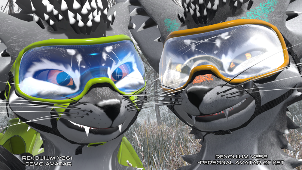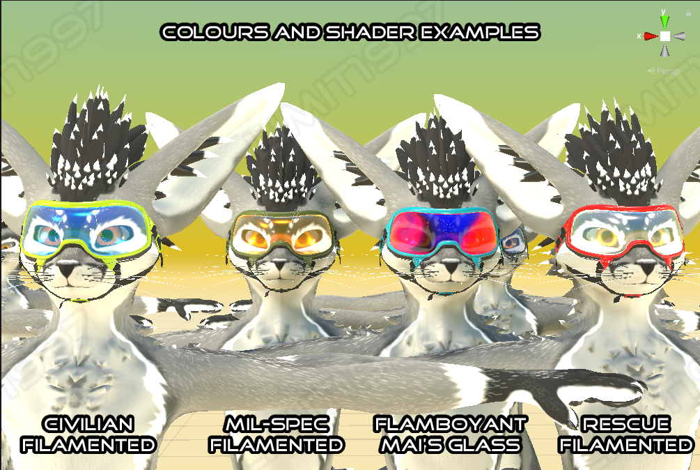 Preview images shown are of the doggles on a friend's personal Rexouium avatar, and a generic avatar I put together to test and promote the product. Orange texture not provided.