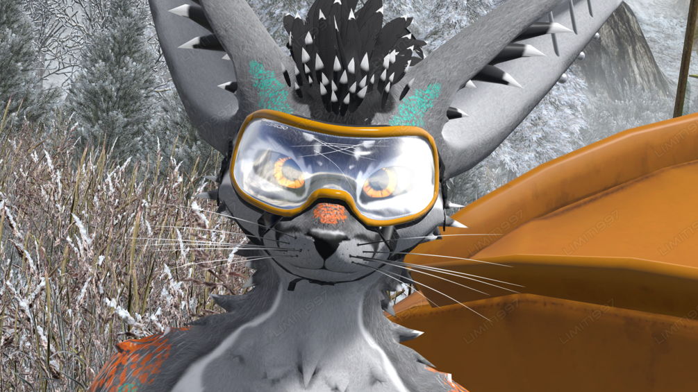 Okay, enough indulging in lore. This is my third ever 3D model; dog goggles for Rexouium. A 3d model with some basic weight painting, and blendshapes that are designed to work with the existing Rexo blendshapes. Straps deform with the chin, and the lenses get pushed up by the cheeks. Also includes a blendshape to hide the doggles.