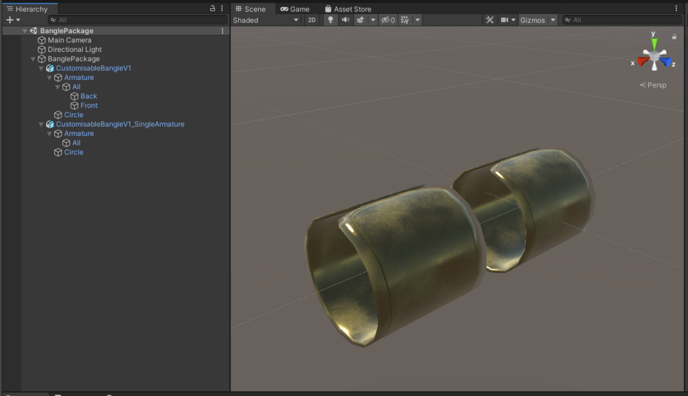 Included in the package are the .fbx files for the single and three armature variants of the bangle, pbr textures, the Unity Package, and .SPP file.